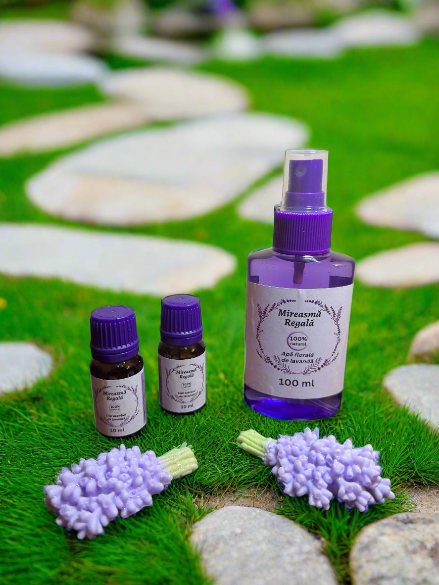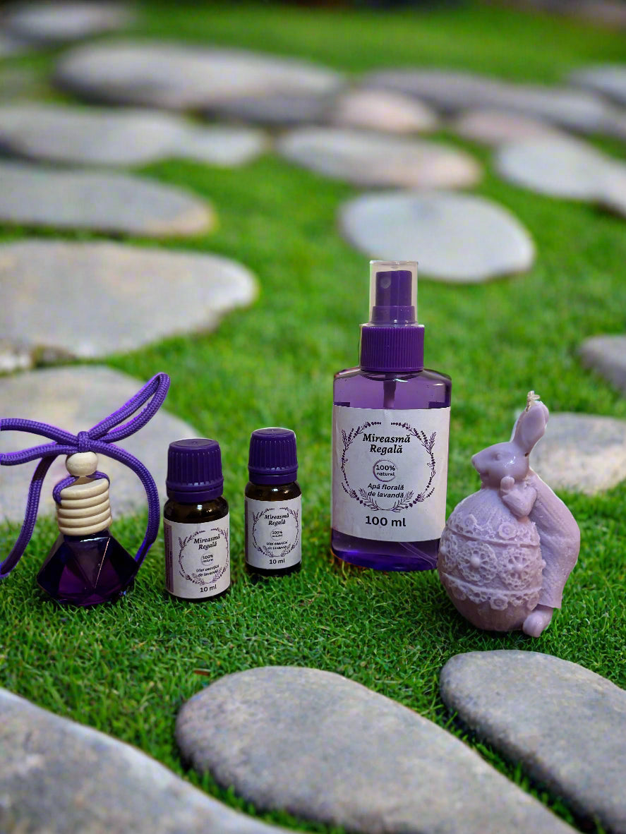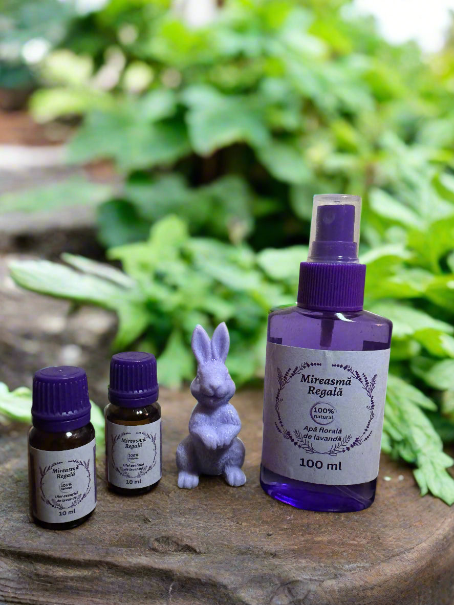 - Ulei esential de lavanda (10 ml) – Pur, natural, distilat cu grija pentru relaxare si echilibru. Poate fi folosit in aromaterapie, bai relaxante sau masaj