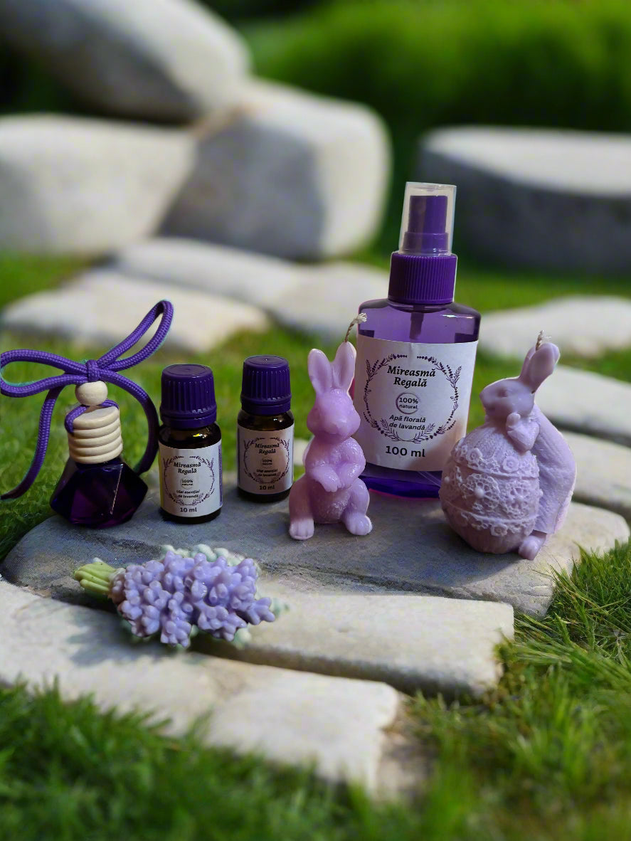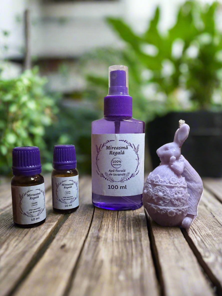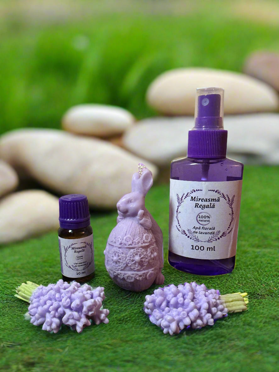 - Ulei esential de lavanda (10 ml) – Pur, natural, distilat cu grija pentru relaxare si echilibru. Poate fi folosit in aromaterapie, bai relaxante sau masaj